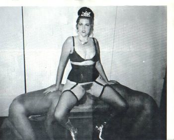 Obviously, his particular needs are very dangerous and he usually ends up doing it without the woman’s knowledge. “Problem is, there are bolts and shit down there—and sometimes they’ll snag you and drag you halfway across the parking lot! This has happened, and he still goes back for more! And don’t forget—modern cars have catalytic converters that hit 900 degrees. Darling! That’s carrying it a little bit too far.” So far, he always survives to do it again. The man was once severely injured, however, when one woman noticed what he was doing and hit the brakes—at the wrong moment. “And then he’s gotten in the worst situation, where the woman will be backing out and just as the tires get on top of him, she’ll spot him and hit the brakes and just sit there on him. He’s planning on her to go over him because he can handle it for a second or two. But if she stops, he’s crushed!” Queen Adrena feels that he enjoys the sense of helplessness and fear and danger. “Being dragged isn’t erotic to him, but the pressure on his stomach and chest is.” Adrena feels that while some are perfectly happy to keep their fantasies and activities the same throughout their lives, others seem to have a need to keep upping the ante. “It’s kind of like booze. Some people can drink socially, and some people become alcoholics and it totally takes over their life.”